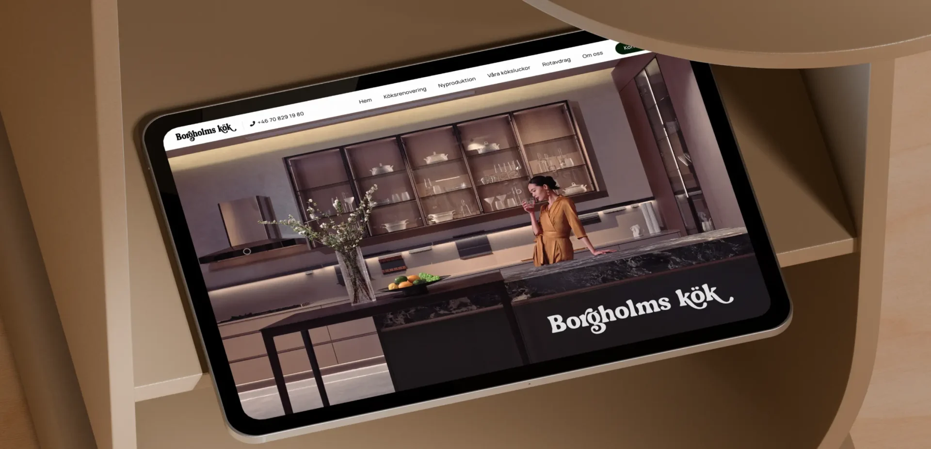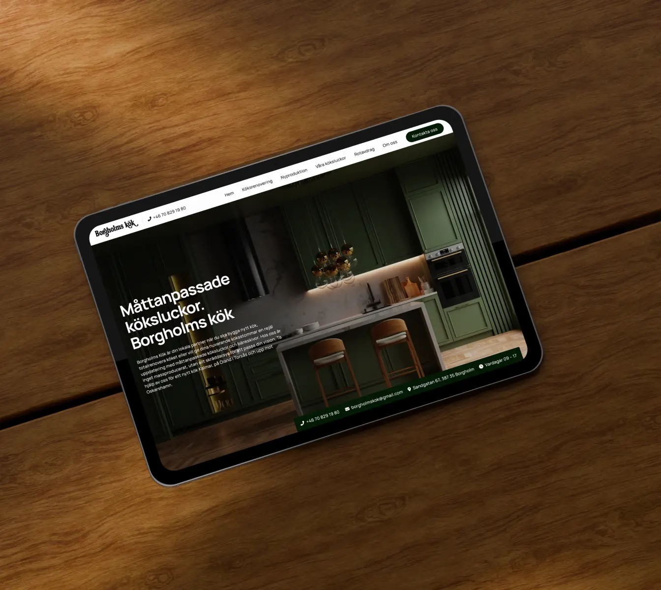 Borgholms Kök skapar unika, måttanpassade kökslösningar – från totalrenoveringar till skräddarsydda luckor. Vårt uppdrag var att utveckla en digital plattform som visuellt förmedlar deras höga hantverkskvalitet. Vi skapade en inspirerande webbplats som effektivt kommunicerar deras unika värde: kökslösningar som är helt skräddarsydda för kundens vision.